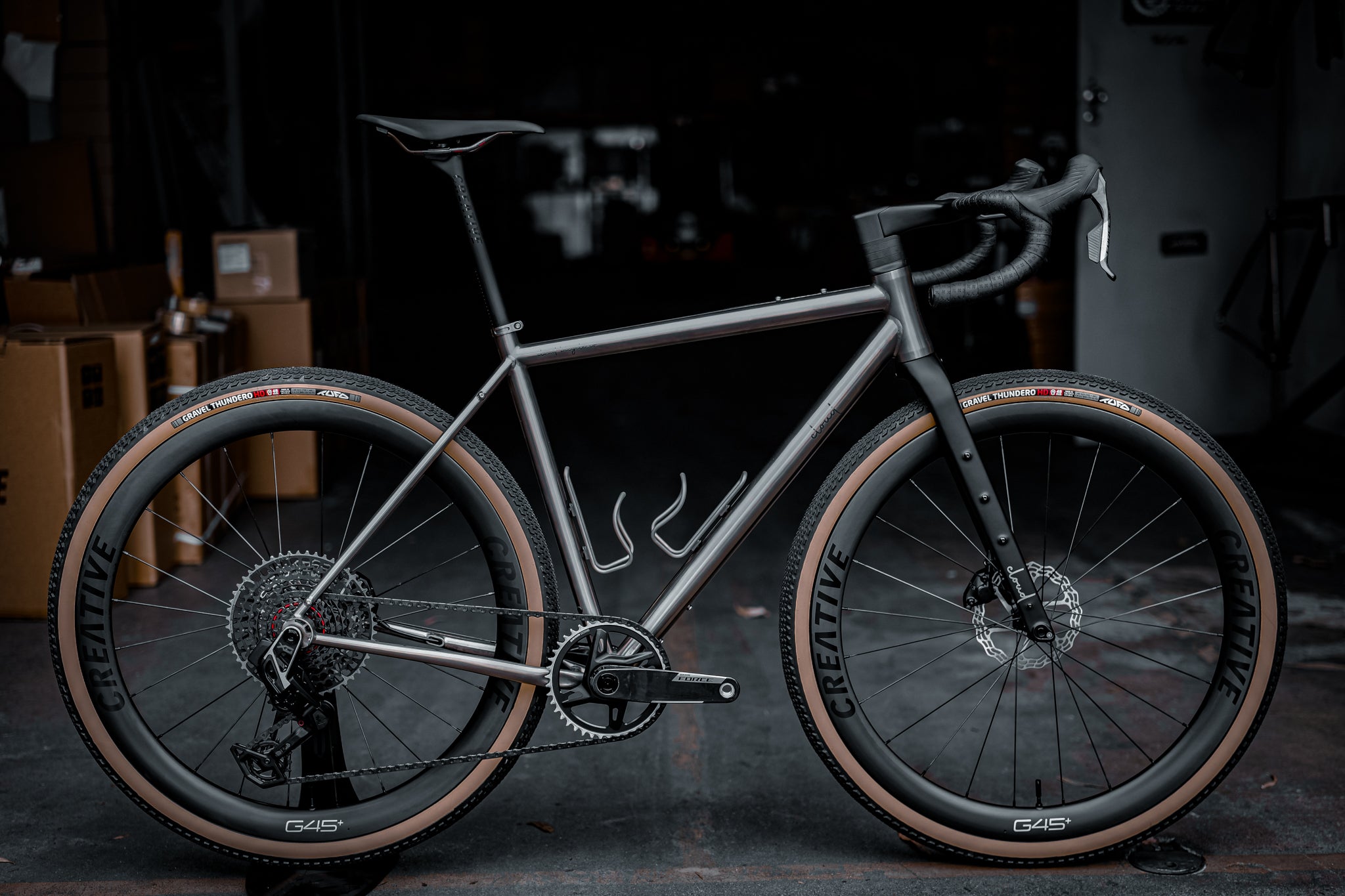 A titanium adventure bike built for speed, stability, and comfort — ready for fast gravel, rough tracks, and everything in between.